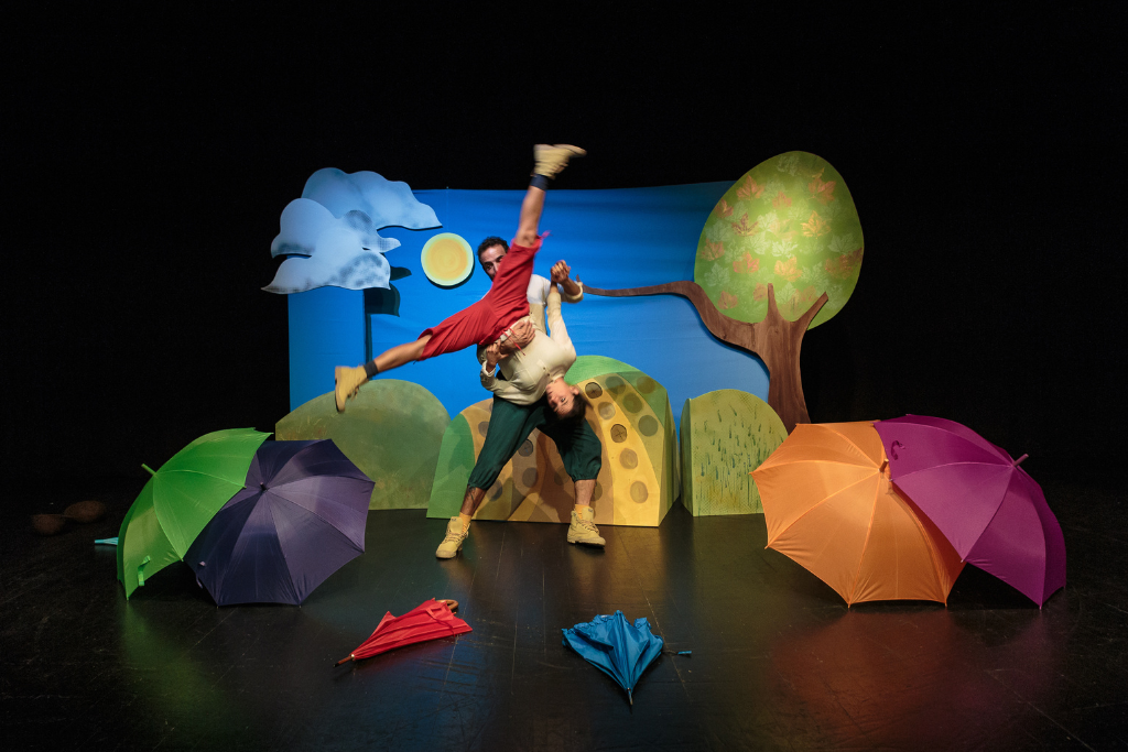 Las nubes llegan. Llueve. Sale el sol. La naturaleza despierta para llenarse de colores. Al amparo de los paraguas encontraremos escondite, bailaremos, cantaremos, y acompañados de pintorescos animales seremos parte del paisaje. Nube nube sol nos mete de lleno en la diversión y en el aprendizaje de todo lo que la lluvia y el sol provocan en nuestra entorno. A través del cuerpo, la gestualidad, el canto y la música, Teatro ó cubo ofrece a la primera infancia la magia de los ciclos de la naturaleza y la importancia de la lluvia para que todo crezca.