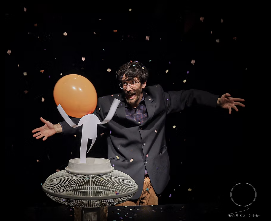 Teatro de Papel es un espectáculo de circo contemporáneo que a través de un bagaje de marionetas extraordinarias, el clown y el teatro físico, busca reivindicar el poder de la Imaginación.