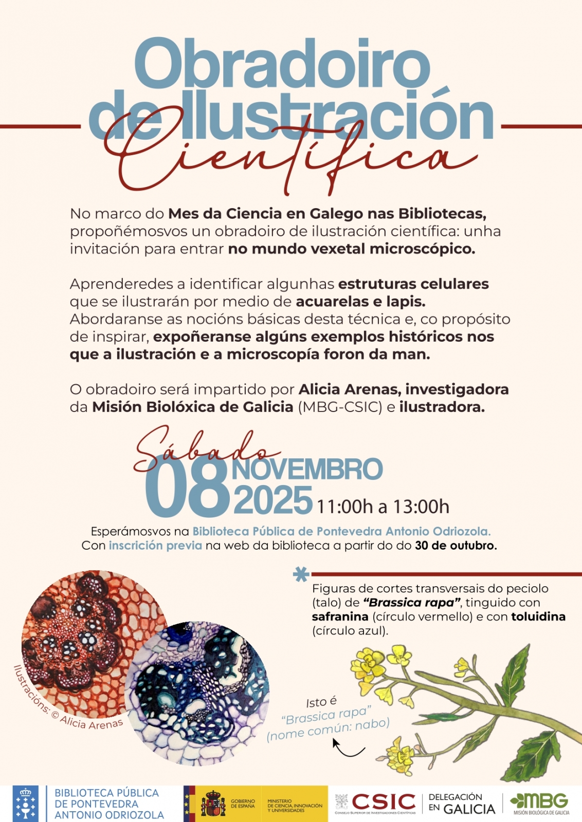 El taller estará impartido por Alicia Arenas, investigadora de la Misión Biológica de Galicia (MBG-CSIC) e ilustradora.