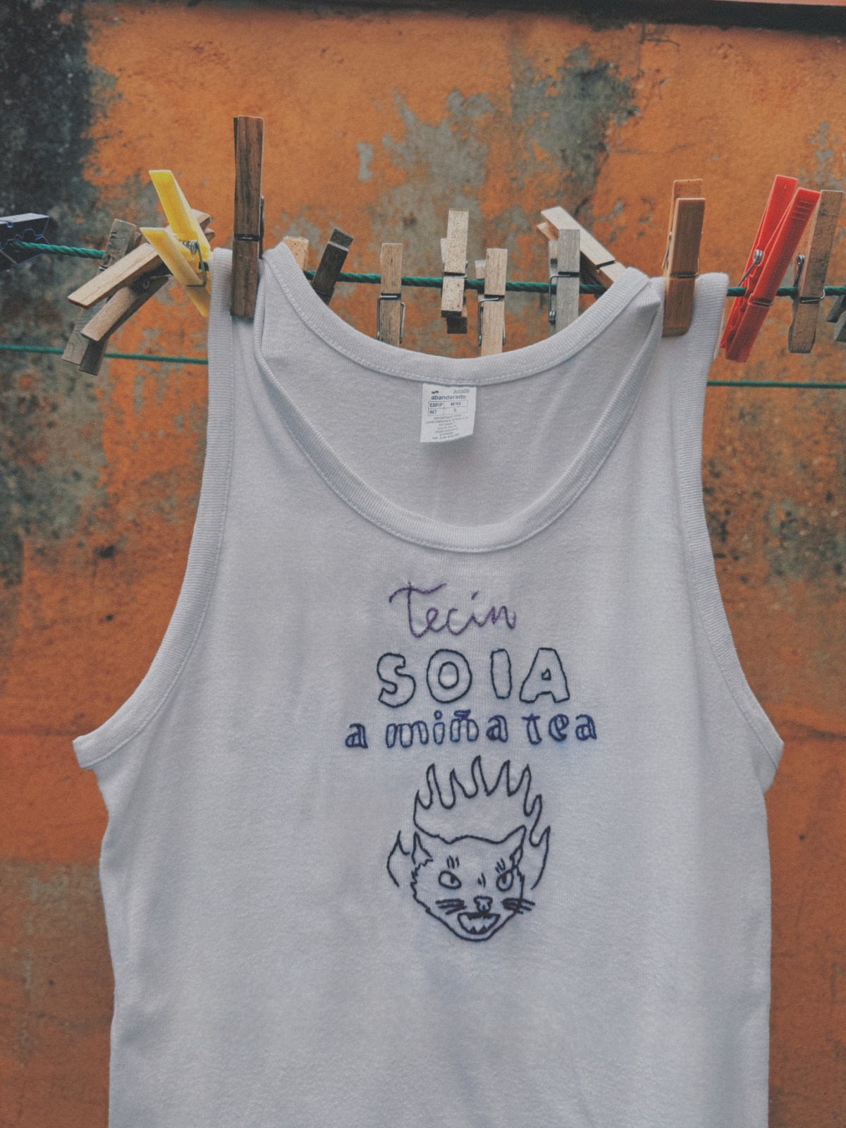 Bordaremos el verso de Rosalía de Castro "Tecín soia a miña tea", dándole una nueva fuerza, en una prenda de vestir: una camiseta, camisa, sudadera, chaqueta... la que te apetezca traer.