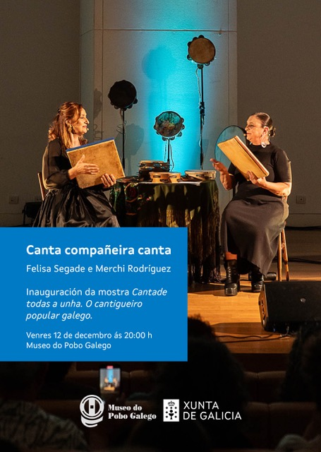 Concierto de Felisa Segade y Merchi Rodríguez en el marco de la inauguración de la muestra Cantade todas a unha. O cantigueiro popular galego, que podrá verse en el Museo do Pobo Galego a partir del próximo 12 de diciembre para cerrar el año dedicado a las pandereteiras.