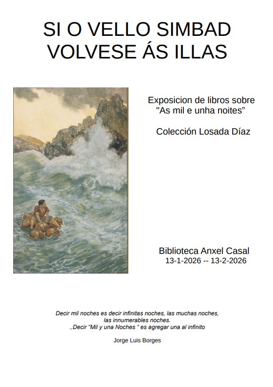 Cedemos el espacio a Santiago Losada, usuario de la biblioteca y coleccionista de libros para que podamos disfrutar de algunos de los ejemplares de su colección Losada Díaz. Se trata de una muestra de ejemplares de Las mil y una noches que estará en el espacio de la hemeroteca, en la planta baja, de 13 de enero a 13 de febrero . Puede visitarse en horario de apertura de la biblioteca.