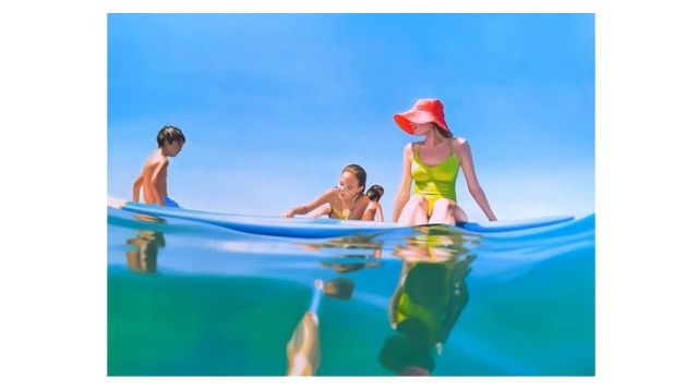 María Treviño, reconocida pintora e ilustradora de origen cartagenero y afincada en Madrid. En esta exposición, su primera individual en Moret Art presenta unas obras pictóricas hiperrealistas de escenas acuáticas y bodegones con múltiples referencias a la infancia que revelan su visión del mes estival.