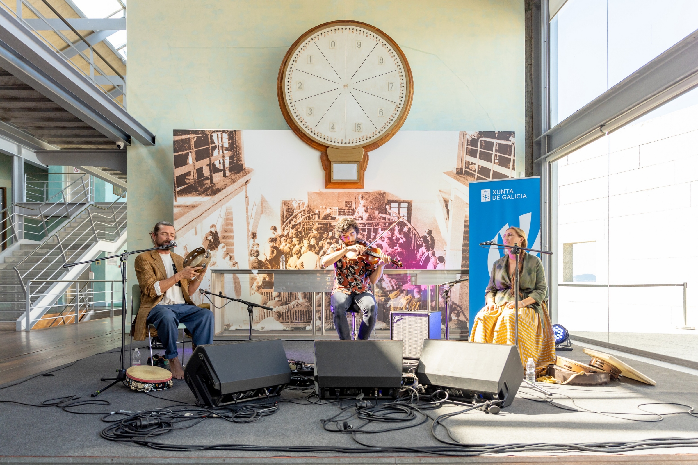Fransy González (percusión y voz), Davide Salvado (percusión y voz) y Cibrán Seixo (violín y mug) son tres conocidos músicos de ampla trayectoria en el panorama musical gallego e internacional.