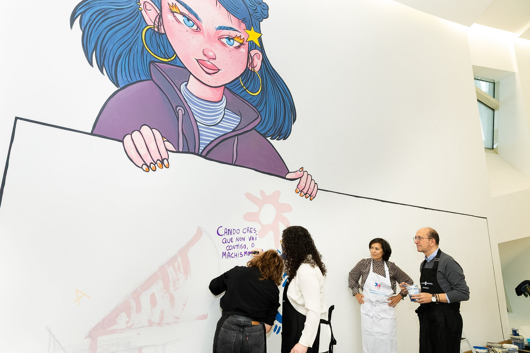 La artista Nana es la encargada de componer el dibujo que ocupará la pared del acceso al piso 1 del Museo Centro Gaiás, un lugar de tránsito por el que pasan la mayoría de las visitas a las exposiciones de la Cidade da Cultura. Esta misma artista finalizará la obra el año próximo, en el marco de la conmemoración del 8-M, Día Internacional de la Mujer, aprovechando las contribuciones de todas las personas implicadas.