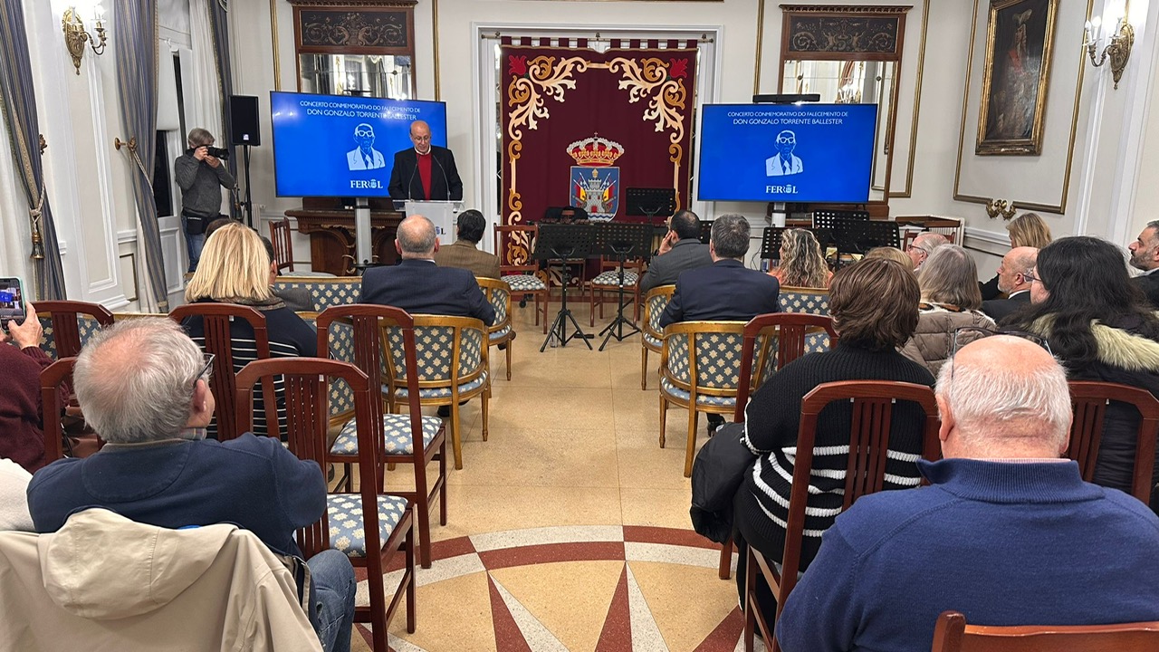 La delegada territorial de la Xunta en Ferrol, Martina Aneiros, asistió esta tarde en el ayuntamiento de Ferrol al concierto conmemorativo del fallecimiento de Gonzalo Torrente Ballester, que tuvo lugar un 27 de enero de hace 26 años.