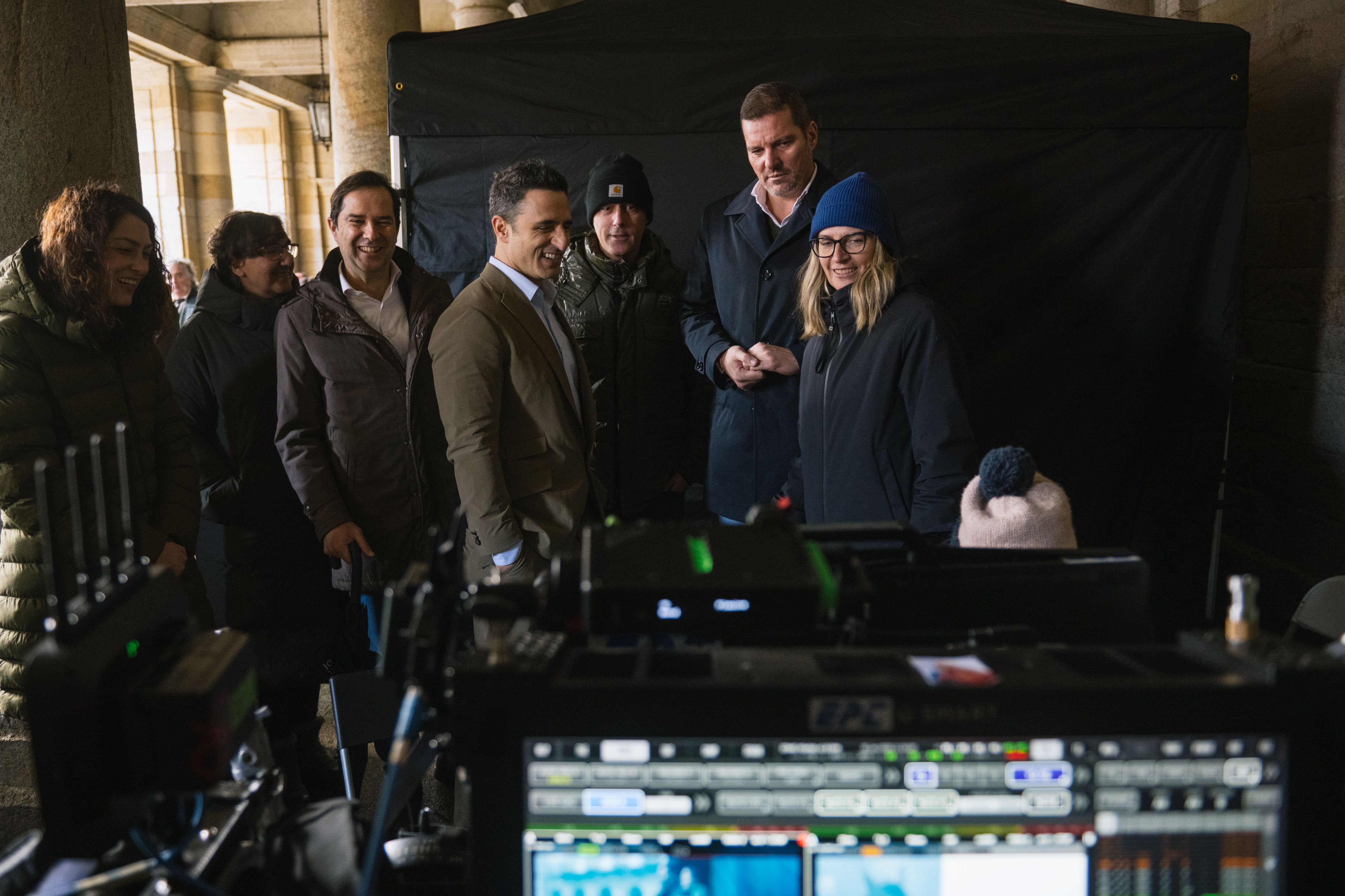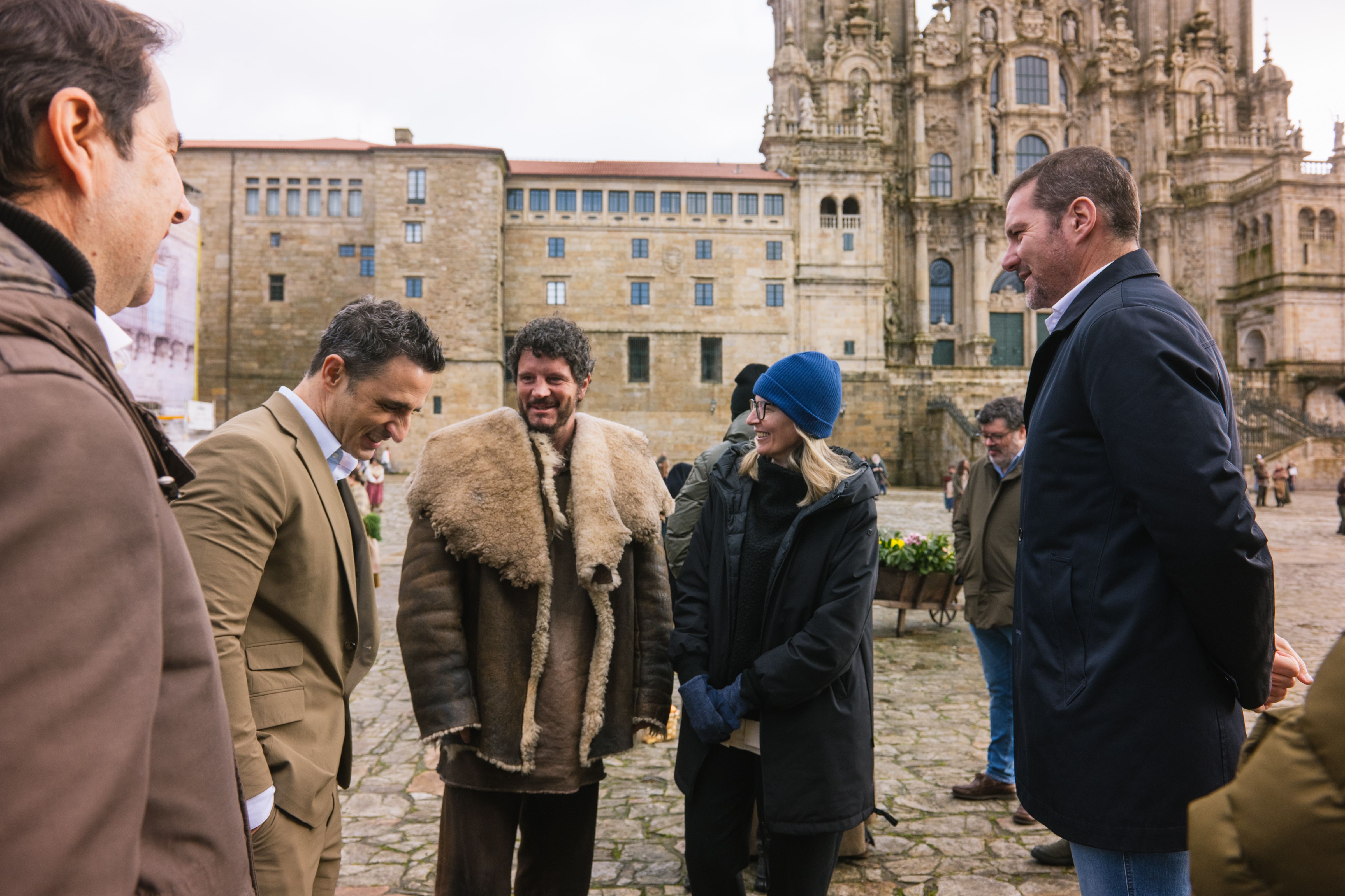 El conselleiro de Cultura, Lingua e Xuventude, José López Campos, asistió esta semana en la compostelana plaza del Obradoiro a una de las sesiones de rodaje de Lobo, miniserie de Vaca Films para Netflix que cuenta con una de las ayudas de la Xunta de Galicia para la atracción de rodajes audiovisuales a nuestra Comunidad. En concreto, el proyecto dispone de una subvención de 300.000 euros a través de la convocatoria de 2025 de este fondo, cofinanciado por la Consellería de Cultura, Lingua e Xuventude y la Unión Europea en el marco del programa Galicia Feder 2021-2027.