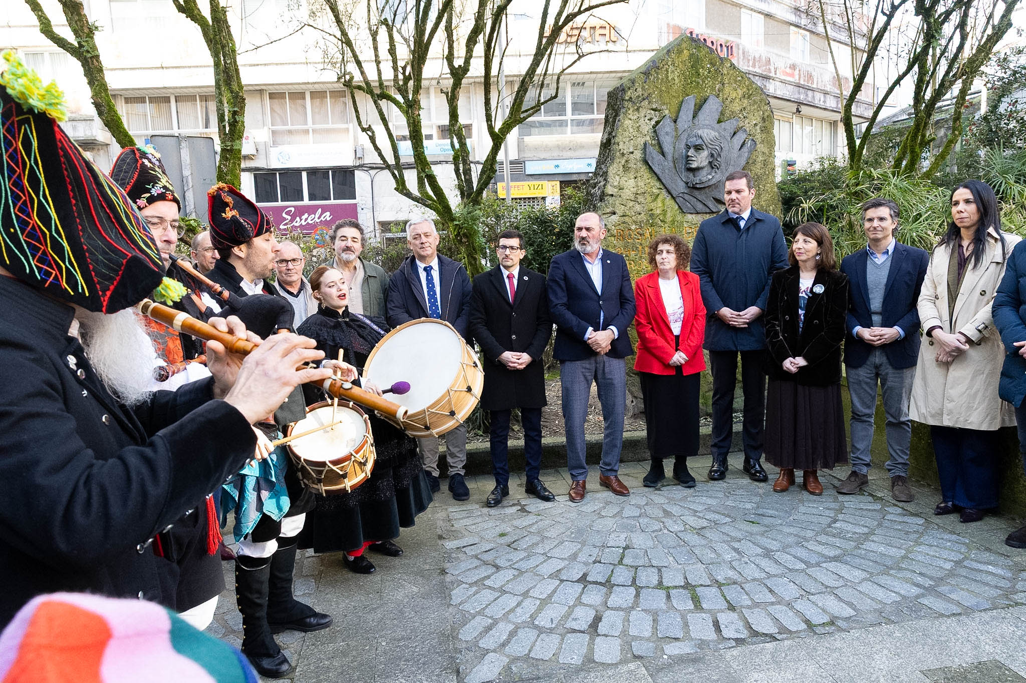 Así, el representante de la Xunta, que estuvo acompañado por el secretario xeral da Lingua, Valentín García, y el director general de Cultura, Anxo M. Lorenzo, participó en la ofrenda floral realizada al lado del monumento a Rosalía localizado en la Plaza de Vigo de la capital gallega, donde nació la escritora. Se trata de un de los numerosos actos con los que hoy se celebra su día, un homenaje que, tal y como apuntó López Campos, también "se extiende a la red de bibliotecas públicas del Gobierno gallego, y al servicio de bibliotecas móviles, donde esta semana programamos distintas actividades para acercar su vida y obra a todos los públicos, en la línea de la Ley de cultura inclusiva y accesible de Galicia".