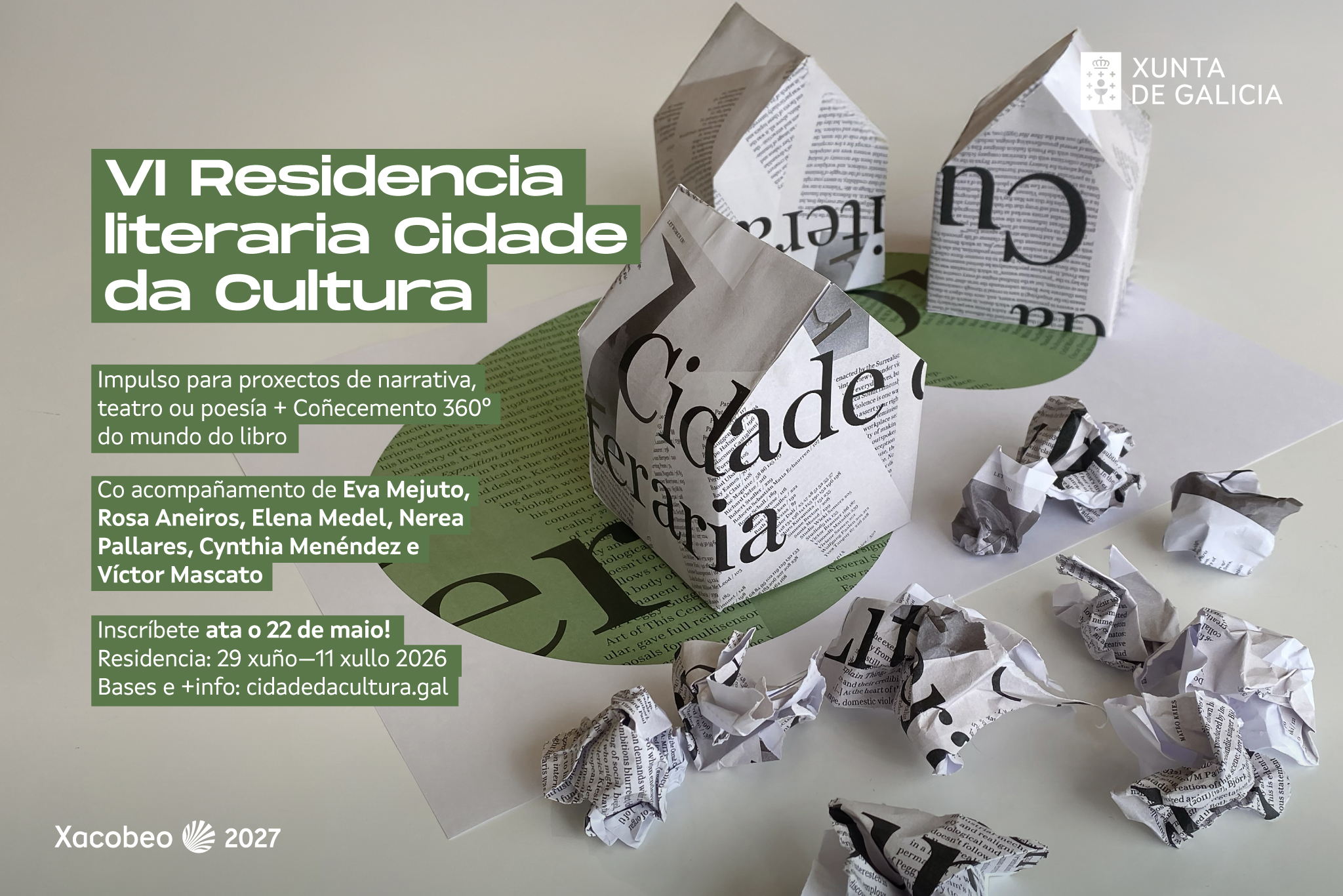 La participación está dirigida a personas nacidas o residentes en Galicia y el plazo de inscripción está abierto hasta el 22 de mayo de 2026. La residencia se desarrollará entre los días 29 de junio y 11 de julio en la Cidade da Cultura, con los gastos de alojamiento y manutención cubiertos por la organización.