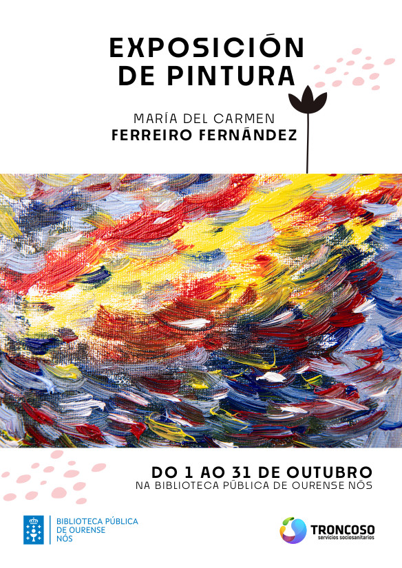 Este mes teremos no primeiro andar da biblioteca unha mostra de pinturas de Mª del Carmen Ferreiro Fernández.