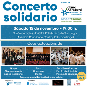 Con motivo do 25 aniversario da asociación Dano Cerebral Santiago de Compostela celébrase un concerto solidario no salón de actos do CIFP Politécnico de Santiago.