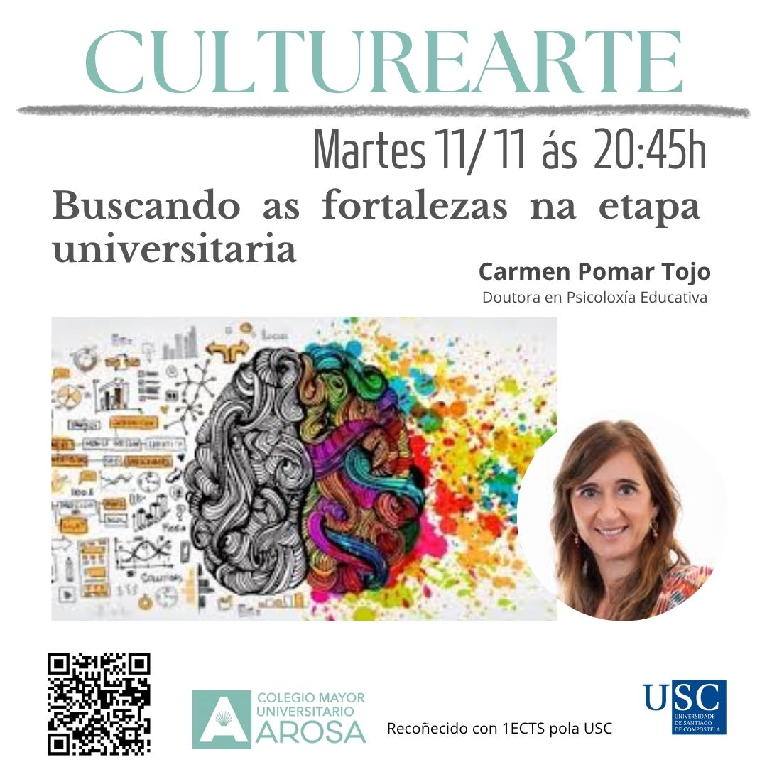 Charla - Coloquio na que Carmen Pomar, doutora en psicoloxía educativa , abordará temas clave como a xestión da ansiedade, o coñecemento, recoñecemento e manexo das emocións así como a búsqueda do equilibrio persoal nunha etapa chea de desafíos e oportunidades. Unha invitación a coñecerse mellor, fortalecer o benestar emocional e potenciar o crecimento académico e persoal.