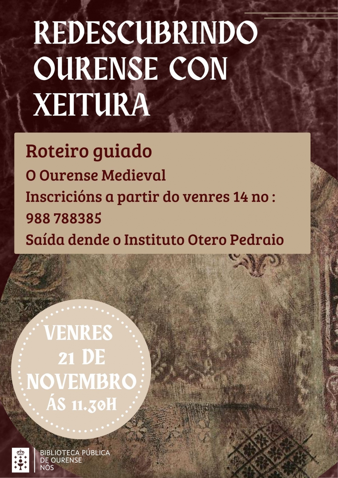 Con este roteiro queremos dar a coñecer o Ourense medieval, fosilizado no trazado urbano da súa zona histórica, trascendendo o mero percurso por elementos arquitectónicos e monumentos e falando das persoas que habitaron a cidade nese momento.