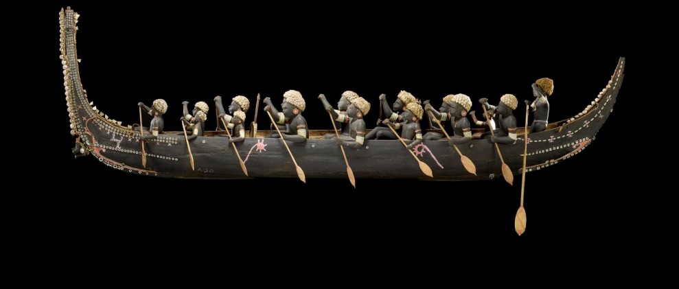 A mostra estrutúrase en sete ámbitos temáticos que permiten afondar na diversidade cultural, artística e espiritual de Polinesia, Melanesia e Micronesia, abordando prácticas como o tecido, a danza, o tallado, a navegación ou as loitas polo territorio e os recursos.