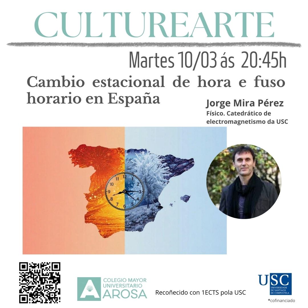 Charla - Coloquio con Jorge Mira, Catedrático de electromagnetismo (USC), investigador E divulgador científico , na que abordará a controversia sobre o cambio de hora e ofreceranos o seu punto de vista.