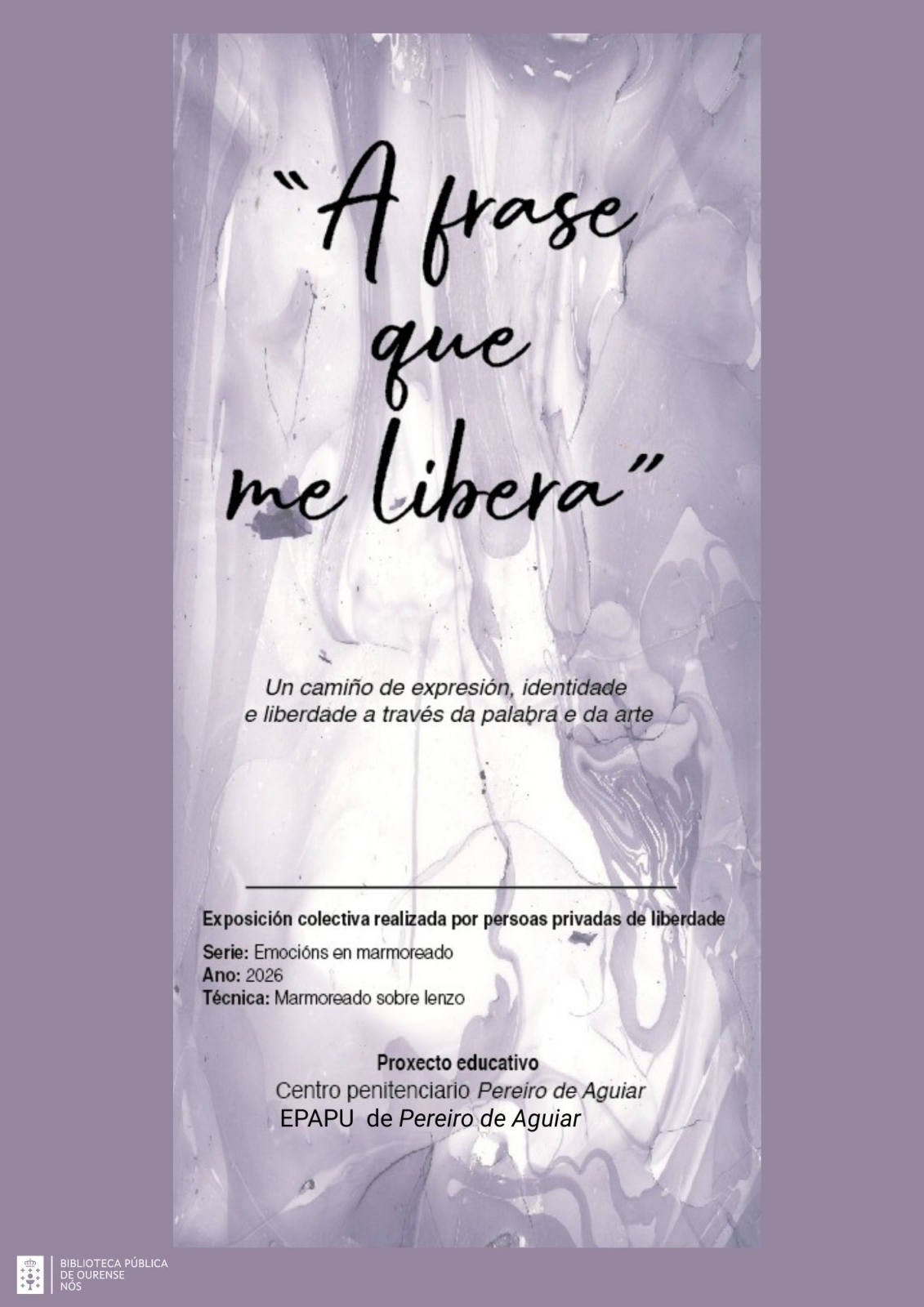 No vestíbulo da biblioteca poderedes visitar a exposición colectiva " A frase que me libera" de persoas privadas de liberdade no centro penitenciario de Pereiro de Aguiar.