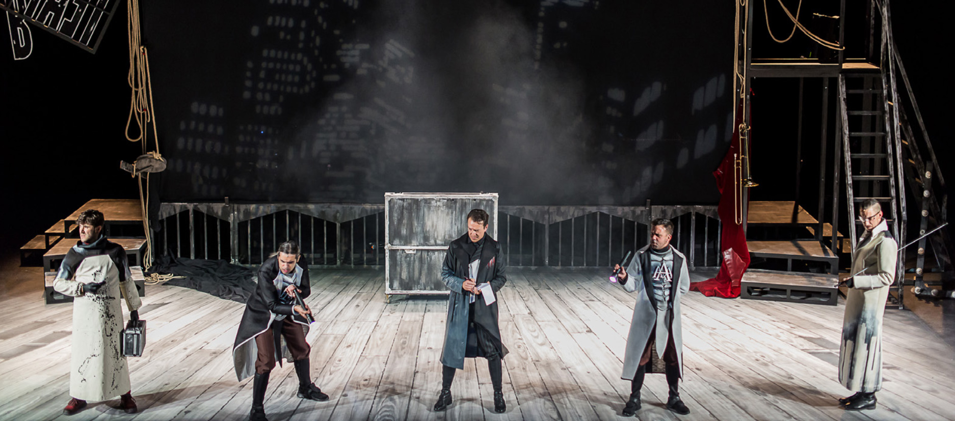 Un labirinto de intrigas e gargalladas servido por cinco actores-músicos. Un thriller con música en directo, a contrarreloxo e a tempo real que converte aos espectadores en testemuñas e sospeitosos do maior magnicidio da historia das táboas: quen matou o teatro?