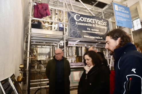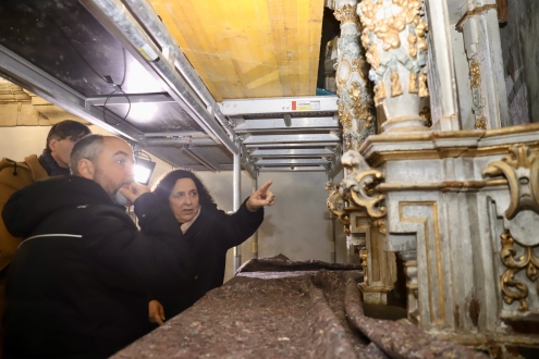 Belén do Campo supervisa a execución das obras de mellora do retablo da igrexa de San Fins de Sales que contan cun apoio da Xunta de máis de 62.000€ e que estarán rematadas en 4 meses