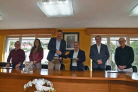 O conselleiro de Cultura, Lingua e Xuventude asina o convenio co alcalde do Pereiro de Aguiar, Luis Menor, para a segunda fase da restauración da antiga vivenda do ilustre galeguista