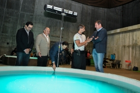 López Campos comprobou o avance da filmación de Punto Nemo 2, que vén de desenvolver varias semanas de traballo na batería de Porto Cuances, no concello pontevedrés do Grove, e contará tamén con localizacións en Canarias e Portugal. O director da Axencia Galega das Industrias Culturais, Jacobo Sutil, acompañouno nesta visita, durante a que saudaron, así mesmo, o director, Álex Rodrigo, e os intérpretes Maxi Iglesias, Sara Matos, Margarida Corceiro e Nüll García, entre outros.