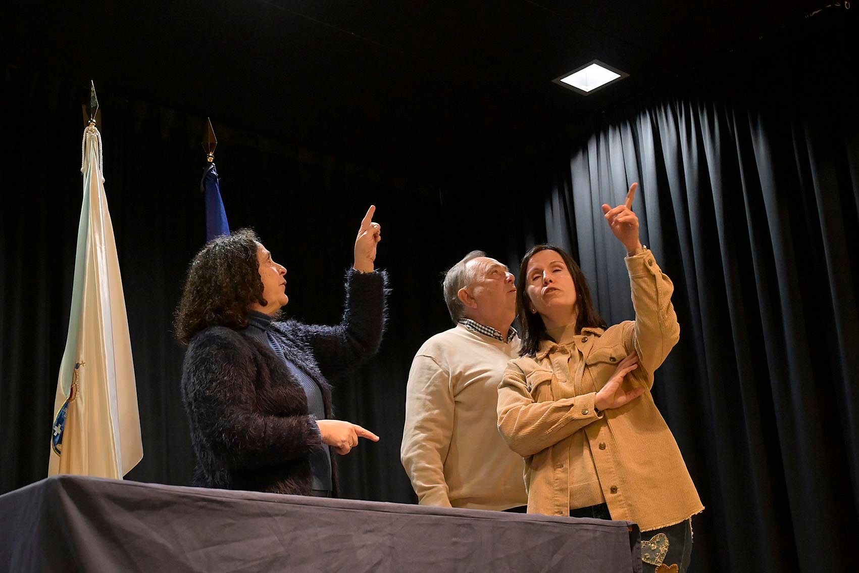 Entre as actuacións executadas destacan a renovación do espazo escénico mediante o pintado en cor negra dos paramentos, teitos, rieles e estrutura da pantalla con pintura acrílica satinada e lavable, o que contribúe a optimizar as condicións técnicas do escenario. Ademais, procedeuse á adquisición e instalación de novo equipamento de son e iluminación, incluíndo unha mesa de mesturas dixital, un caxetín dixital e tres focos de iluminación.
