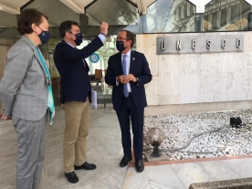 París, 3 de xuño de 2021.- A Xunta de Galicia e o Goberno central veñen de acordar conxuntamente o aprazamento estratéxico do último paso na presentación da candidatura do paisaxe cultural da Ribeira Sacra ao Comité do Patrimonio Mundial. Trátase dunha decisión conxunta e consensuada que permitirá fornecer aínda máis candidatura atendendo ás avaliacións e os informes de Icomos, organismo asesor da Unesco no trámite de avaliación das candidaturas. Así o anunciaron hoxe o conselleiro de Cultura, Educación e Universidade, Román Rodríguez, e o embaixador de España ante a Unesco, Juan Andrés Perelló, tras unha reunión mantida en París.